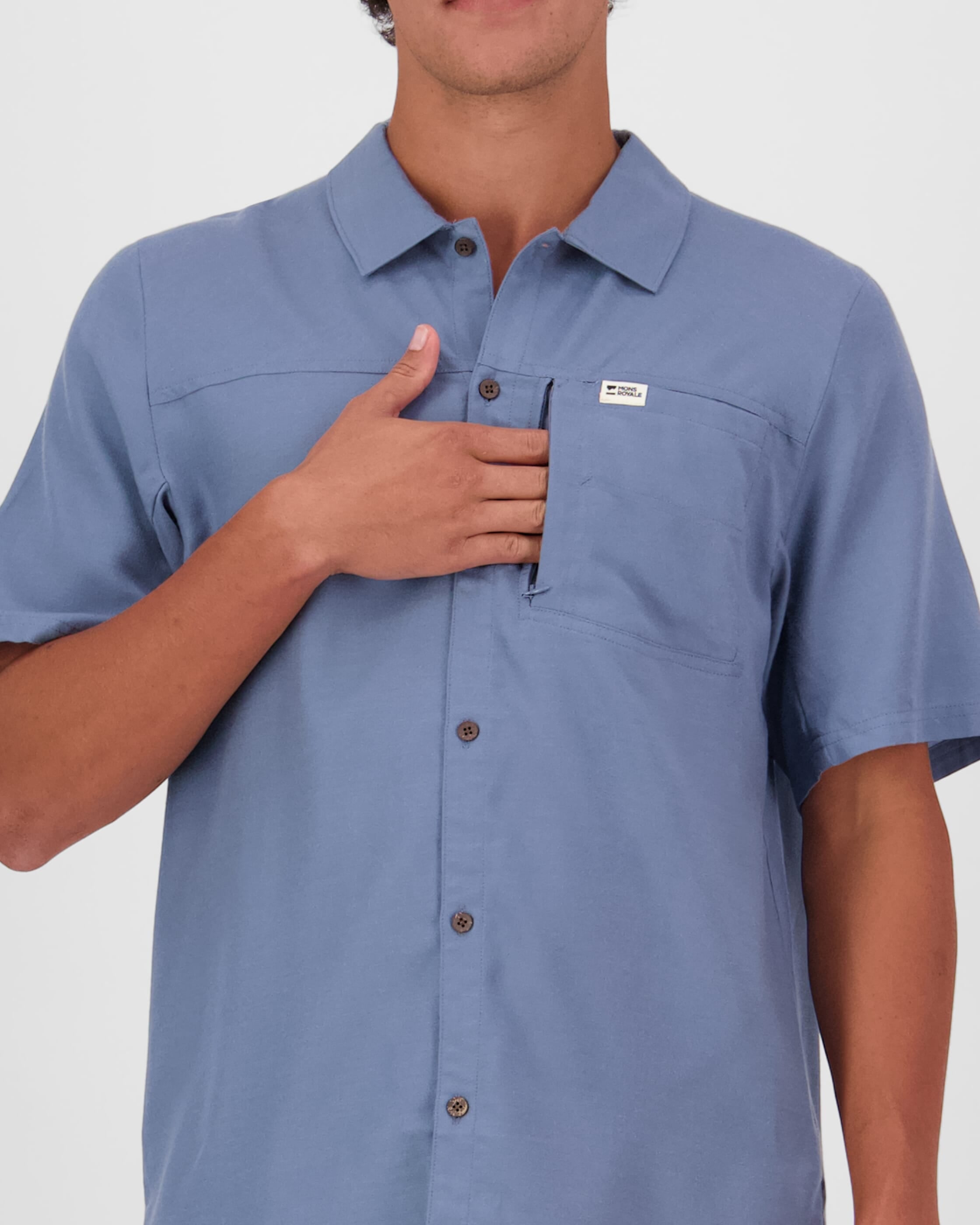 Bypass your clammy cotton shirt and reach for our all-natural blend of Merino Wool and Tencel™. A throwback style in short sleeve that keeps your temp in check, dries fast and never stinks. All day, all night, all mission.